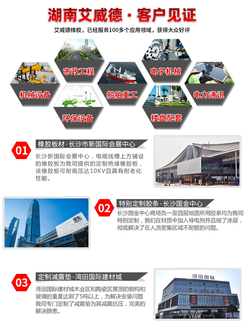 橡胶板英文翻译:rubber slab; rubber sheet以橡胶为主体材料(可含有织物、金属薄板等增强材料),经硫化而制得的具有一定厚度和较大面积的片状产品,简称胶板。橡胶板具有较高硬度,物理机械性能一般,可在压力不大,温度为20°~+140℃的空气中工作。橡胶板系由混炼胶经压延贴合成型或挤出成型,用平板硫化机硫化或用鼓式硫化机连续硫化而制成。色泽:黑色,灰色,绿色,蓝色等。广泛用于工矿企业、交通运输部门及房屋地面等方面。用作密封胶圈、胶垫、门窗封条和铺设工作台及地板。